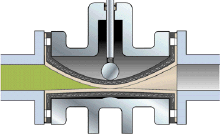 7、球形,指閥體外殼形狀。在采用用控制介質(zhì)注入閥體外殼與套管之間,擠壓套管實(shí)現(xiàn)夾斷的方式時(shí),采用球形外殼有利于套管在介質(zhì)壓力下回到完全打開狀態(tài)。