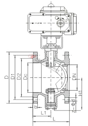 VQ977(H/FY)對夾式電動V型球閥外形參數及連接尺寸